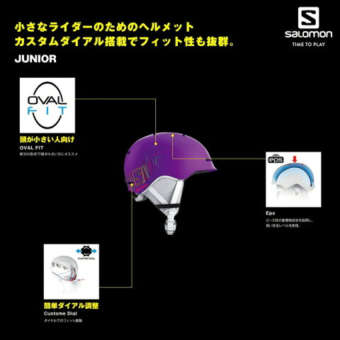 SALOMON JR HELMET GROM商品説明SAFETY:EPS SHELL:In-Mold Construction FIT:Custom Dial Fit System・Oval Fit LINING:Removable/washable ※掲載商品の仕様、デザイン、生産国、発売時期は 予告なく 変更する場合がありますので、 あらかじめご了承ください。