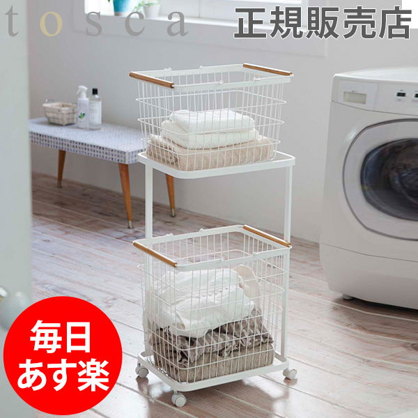 TOP > ランドリーワゴン+バスケット Tosca トスカ 山崎実業 3点セット 3300 ホワイト ランドリーラック キャスター付き 洗濯かご バスケット あす楽