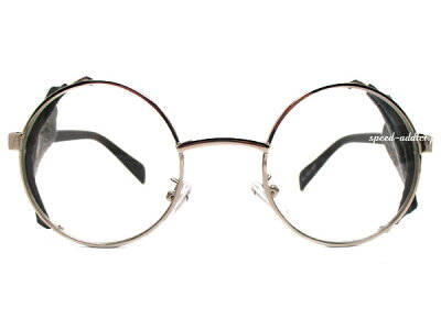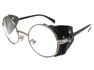 30's STYLE LEATHER SIDE COVER ROUND SUNGLASS(30sスタイルレザーサイドカバーラウンドサングラス)SILVER/BLACK × CLEAR 伊達メガネ伊達眼鏡だてめがねロイド眼鏡ラウンドフレーム合皮製防風防塵防雪uvカット